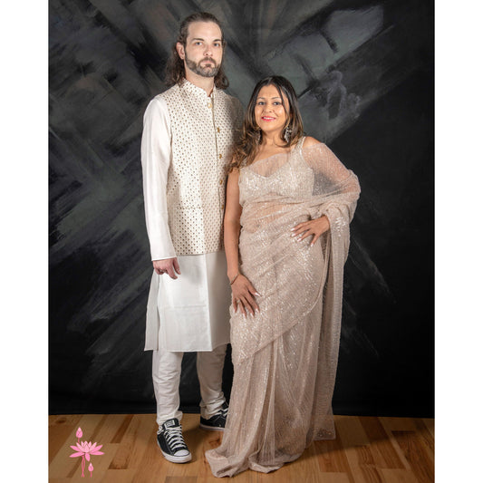 Men's White Kurta Set with Sequin Work & Nehru Jacket – Elegant Festive Wear