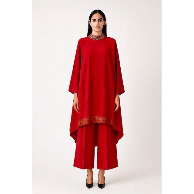 A beautiful and timeless collection of velvets with zardosi embroidery, dabka thread work with fully embroidered dupatta. Matched with satin silk straight pants with gotta work.
