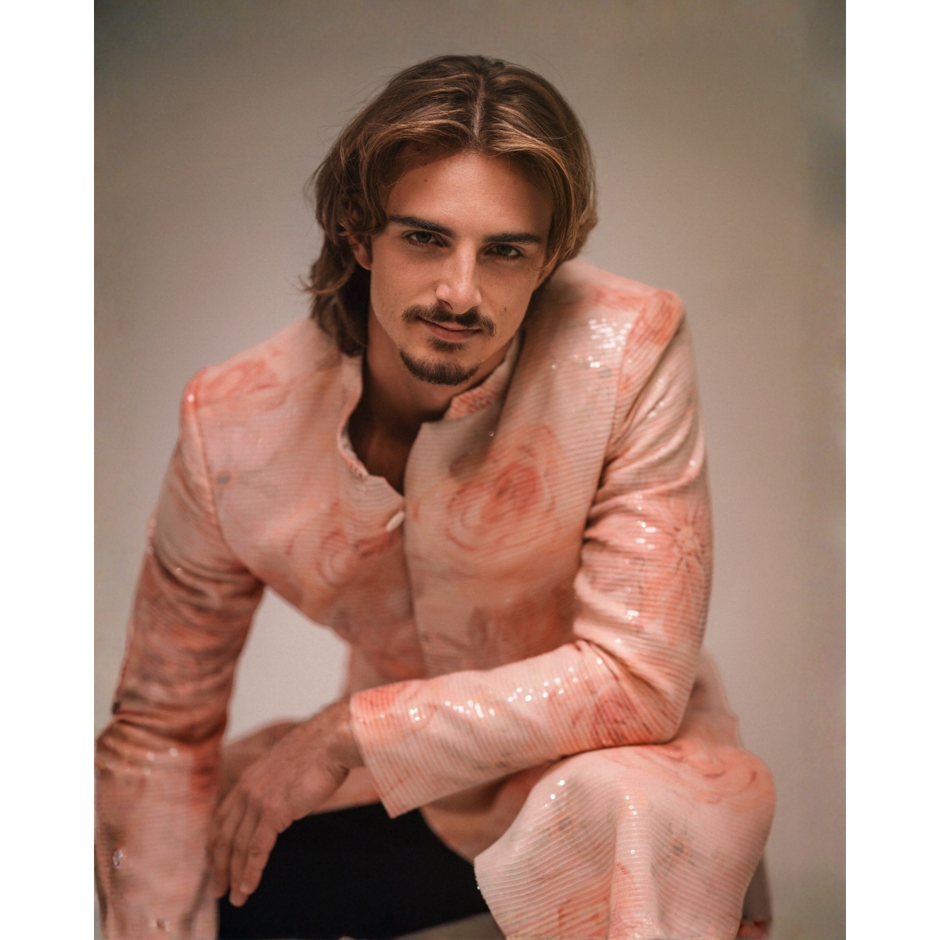 Sequined Floral Shervani with White Pants